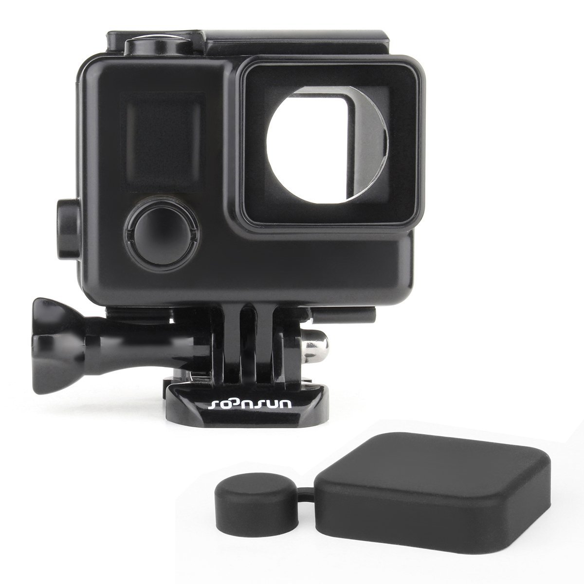 This SOONSUN blackout housing case with standard LCD touch backdoor is perfect for special ops concealed filming due to its blackout design that ensures low visibility while filming.The matte black out design could eliminate reflection caused by any flashes and light on the housing surface.it's 3 meters waterproof,not for sea diving.The standard size LCD touch backdoor allow you touch the camera screen when you are filming.